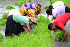 陳華林和專家們來到這個村,坦桑尼亞coc清關(guān)教當?shù)厝朔N地。陳華林和專家們拿長線當標尺,每約16.5厘米畫上一個刻度,將長線在田里細細拉直,給坦桑尼亞農(nóng)民示范按照間距插秧。又動員他們挖水塘,積水來對抗干旱。