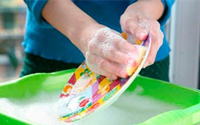 1)“不要使用流動(dòng)的水沖洗,而是將盤子浸入放有推薦洗滌劑用量的水中清洗”;